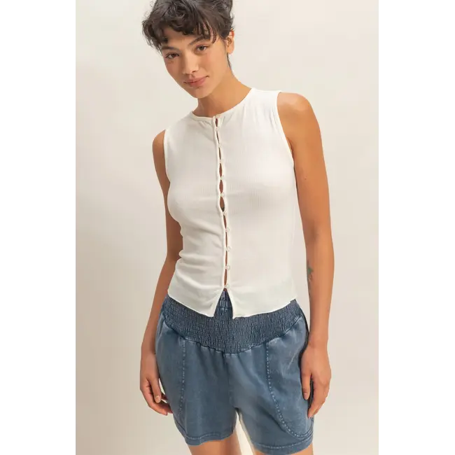 Double Zero Double Zero Button Down Ribbed Tank Top (DZ26A759)