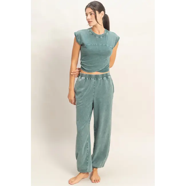 Double Zero Double Zero Rolled Sleeve Wrap-Front Crop Top and Jogger Set (DZ26A172)